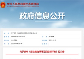 2019年10月10日,生態環境部發布了《危險廢物填埋污染控制標準》