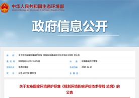 2019年12月13日,生態環境部發布了《規劃環境影響評價技術導則 總綱》(HJ130-2019)