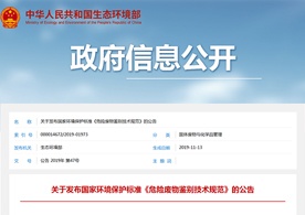 2019年11月13日,生態環境部發布了《危險廢物鑒別技術規范》(HJ 298-2019)