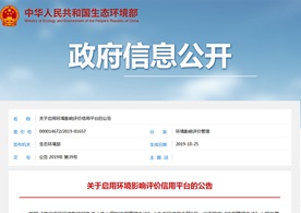 2019年10月25日,生態環境部發布關于啟用環境影響評價信用平臺的公告