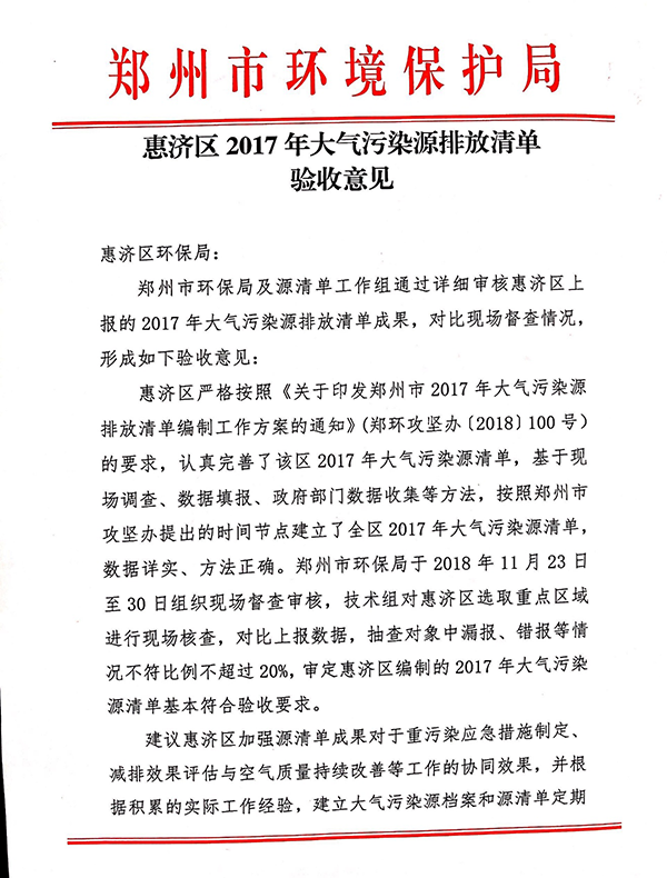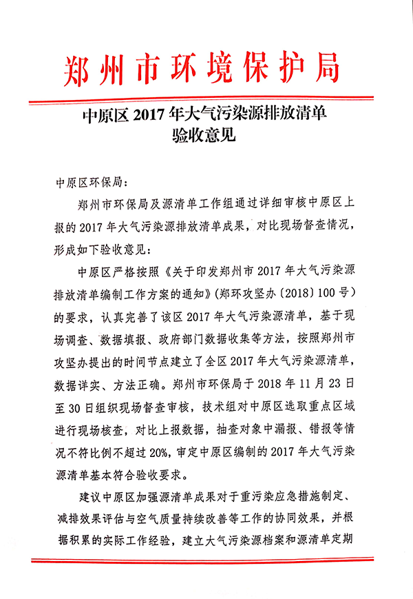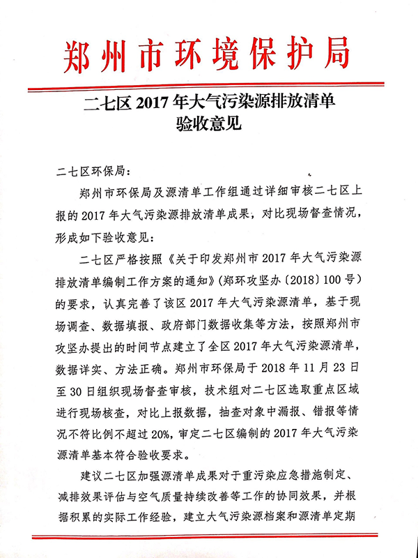 我司承接的“中原區(qū)、二七區(qū)、惠濟(jì)區(qū)2017年大氣污染源排放清單”順利通過(guò)驗(yàn)收